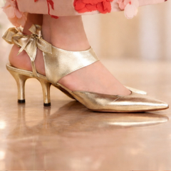 そして、足元には、かわいいリボン付きのゴールドのヒール。