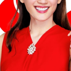 胸元のアクセサリーは『ブローチ』を着用していました。