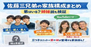 そして、【2026最新】佐藤三兄弟とは何者?プロフィールなど、初めての人にもわかりやすくまとめました。